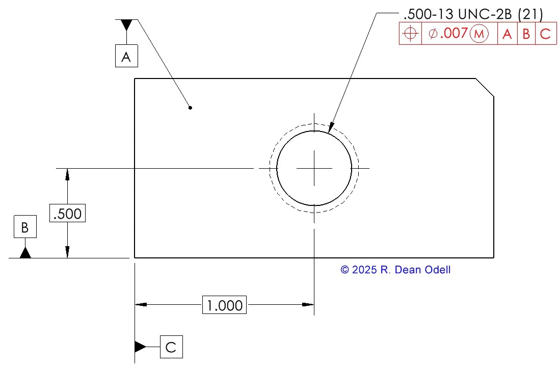Figure 7 Incomplete Drawing Showing a Threaded Hole with Position at MMC, applied to the minor diameter.